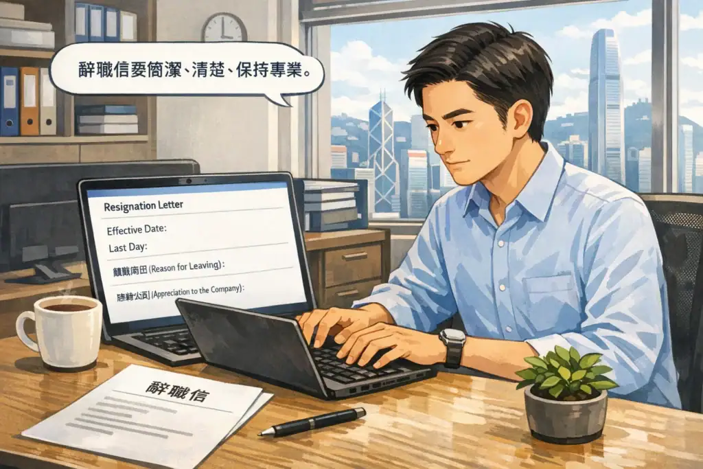 香港短辭職信是香港職場常見的正式文件。香港短辭職信的主要目的是清楚表達離職決定、確認通知期與最後工作日(Last Day),並保持專業的職場關係。